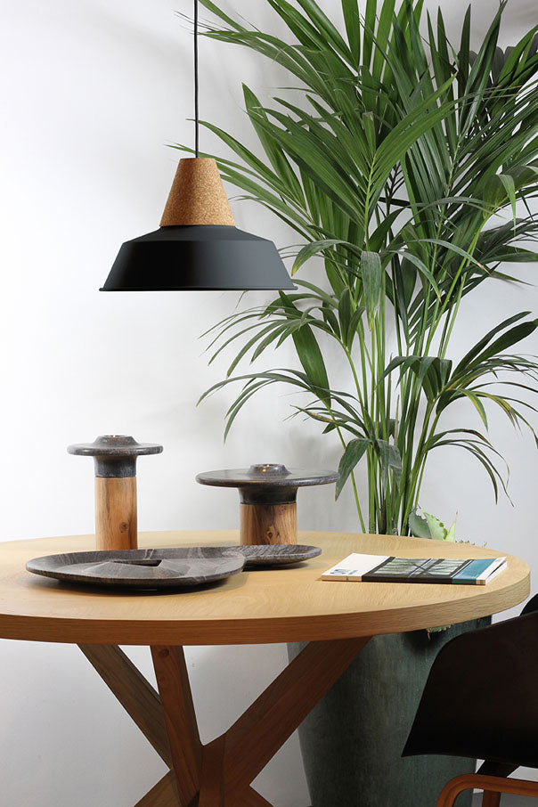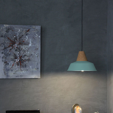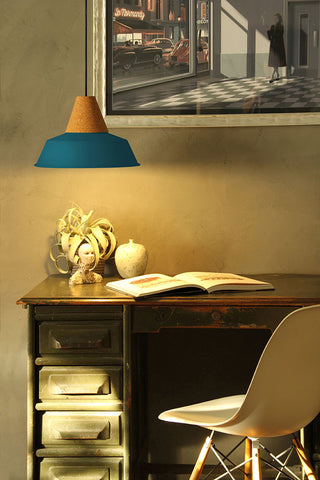 Design: Classic pendant lamp with a painted metal shade and cork detailing