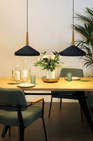Easylight Roque Pendant Lamp draws inspiration from volcanic forms with a sleek, angular metal shade complemented by an organic cork accent. Its elegant silhouette and directional light make it a stunning focal point above dining areas or in modern interiors.